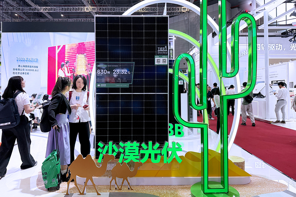 企业创新活力持续迸发。海泰新能连续两次入选彭博新能源财经(BNEF)全球光伏组件制造商第一梯队(Tier 1)榜单。在本次展会上海泰新能又获得多项国际权威认证,包括TÜV莱茵沙漠光伏组件认证、TÜV北德及莱茵目击实验室认证、CGC鉴衡柔性支架匹配性认证以及Kiwa PVEL“最佳表现者”认证,体现了中国企业在产品可靠性与环境适应性方面达到的国际水准。